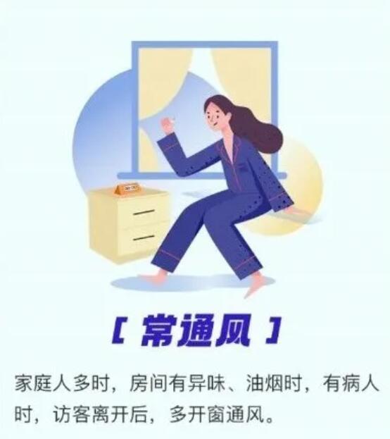 7.常通風。家庭人多時,房間有異味、油煙時,有病人時,訪客離開后,多開窗通風。