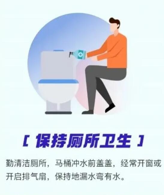 9.保持廁所衛(wèi)生。勤清潔廁所,馬桶沖水前蓋蓋,經常開窗或開啟排氣扇,保持地漏水彎有水。